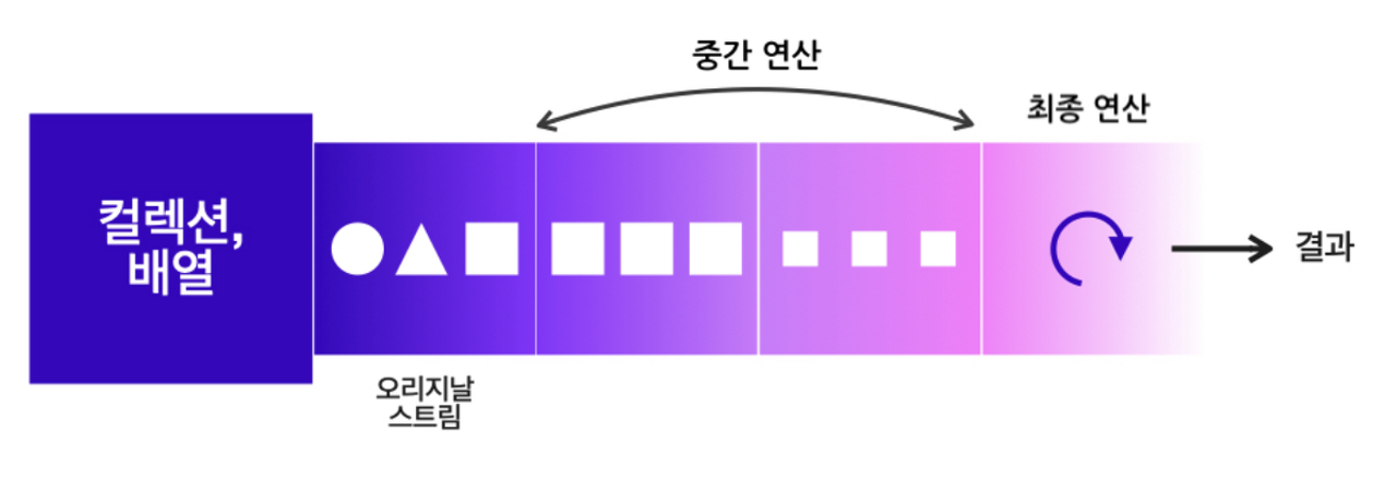์คํธ๋ฆผ(Stream)์ ์๋ฐ8๋ถํฐ ๋์ ๋ ๋ฌธ๋ฒ์ผ๋ก ๋ฐฐ์ด ๋ฐ ์ปฌ๋ ์ ์ ์ ์ฅ์์๋ฅผ ํ๋์ฉ ์ฐธ์กฐํด์ ๋๋ค์์ผ๋ก ์ฒ๋ฆฌํ ์์๋๋ก ํ๋ ๋ฐ๋ณต์์ด๋ค. for๋ฌธ์ด๋ Iterator๋ฅผ ์ฌ์ฉํ๋๊ฒฝ์ฐ ์ฝ๋๊ฐ ๊ธธ๊ณ ๋ณต์ก ํด์ง์์๋ค. ๋ํ ์ ์ธํ ํ๋ก๊ทธ๋๋ฐ(Declarative Programming) ๋ฐฉ์์ผ๋ก ๋ฐ์ดํฐ๋ฅผ ์ฒ๋ฆฌํ์ฌ ๋ด๋ถ์ ๋์์๋ฆฌ๋ฅผ ๋ชจ๋ฅด๋๋ผ๋ ์ด๋ค ์ฝ๋๊ฐ ์ด๋ค ์ญํ ์ ํ๋์ง ์ง๊ด์ ์ผ๋ก ์ดํด๊ฐ ๊ฐ๋ฅํ๋ค.