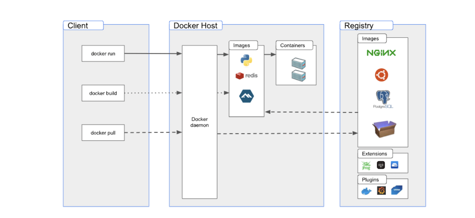 ๋์ปค๋ server - client ์ํคํ ์ฒ๋ฅผ ์ฌ์ฉํ๋ค. ๋์ปค์ ์ ์ฒด์ ์ธ flow๋ ์ฌ์ฉ์๊ฐ ์คํํ๋ ๋ช ๋ น์ด๋ฅผ ์ ๋ ฅ(client)ํ๋ฉด daemon์ ์ ๋ฌ์ด ๋๊ณ , daemon์ images์ ํด๋นํ๋ ์ด๋ฏธ์ง๊ฐ ์๋์ง ํ์ธํ์ฌ ์์ผ๋ฉด ์คํํ๊ณ , ์์ผ๋ฉด registry์์ ์ด๋ฏธ์ง๋ฅผ ๊ฐ์ ธ์์ ์คํํ๋ค.