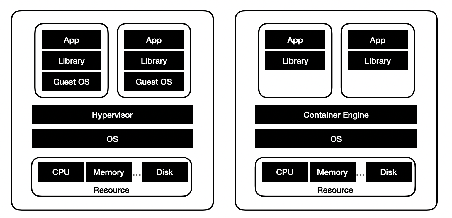 ์ปจํ ์ด๋๋ ๊ฐ์ํ ๊ธฐ์ ์ค ํ๊ฐ์ง์ด๋ค. ํธ์คํธ๋ ์ด์์ฒด์ ์์ ์ฌ๋ฌ๊ฐ์ ๊ฒฉ๋ฆฌ๋ ํ๊ฒฝ์ ์์ฑํ๊ณ ๊ฐ๊ฐ์ ์ปจํ ์ด๋ ์์์ ์ ํ๋ฆฌ์ผ์ด์ ์ ์คํํ๋ค. ๊ธฐ์กด์ ํ์ดํผ๋ฐ์ด์ ๊ธฐ๋ฐ์ ๊ฐ์ํ ๊ธฐ์ ์ ๊ฐ์๋จธ์ (vm)์ ์์ฑํ๊ณ ๊ตฌ๋ํ๋๋ฐฉ์์ผ๋ก ์๋ํ๋ค. ์ผ์ชฝ๊ทธ๋ฆผ์ ๋ณด๋ฉด hypervisor ์์ ๋๋ค๋ฅธ OS๋ฅผ ํ ๋นํ๊ณ , ๊ทธ OS์์์ ๋์ํ๊ฒ ๋๋ค. Hypervisor ์์์ ๋์ํ๊ณ ์๋ VM๋ค์ ๊ฐ๊ฐ์ ์ปดํจํฐ๋ก ์๊ฐํ๋ฉด ๋๋ค. ์ฆ, OS์ค์น๋ถํฐ ์์ํด์ผ ๋๋ค๋ ์๋ฏธ์ด๋ค. ํ์ง๋ง ์ปจํ ์ด๋๋ฅผ ์ฌ์ฉํ๊ฒ ๋๋ฉด OS๋ฅผ ํ ๋นํ ํ์๊ฐ ์์ด์ง๊ณ , ํ๋ก์ธ์ค ๋จ์๋ก ๊ฒฉ๋ฆฌ ํ๊ฒฝ์ด ์ธํ ๋๋ค.